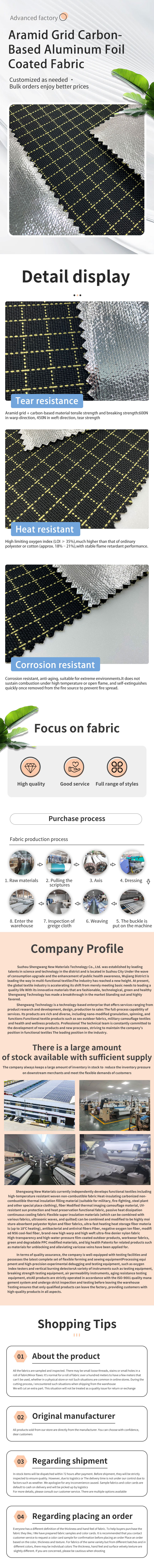 アラミドグリッドカーボンベースのアルミホイルコーティング生地